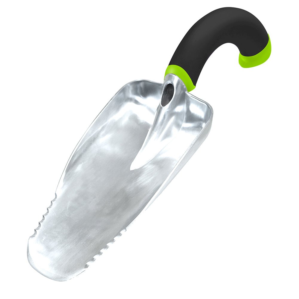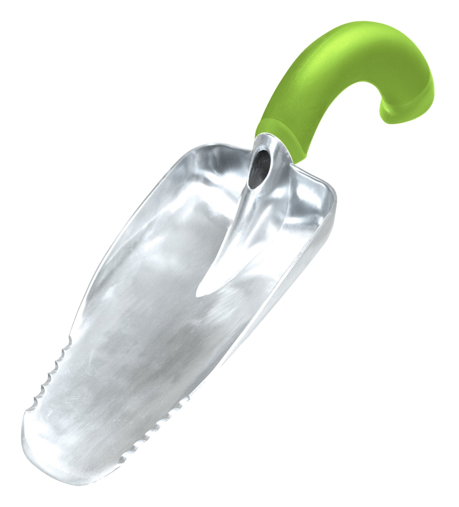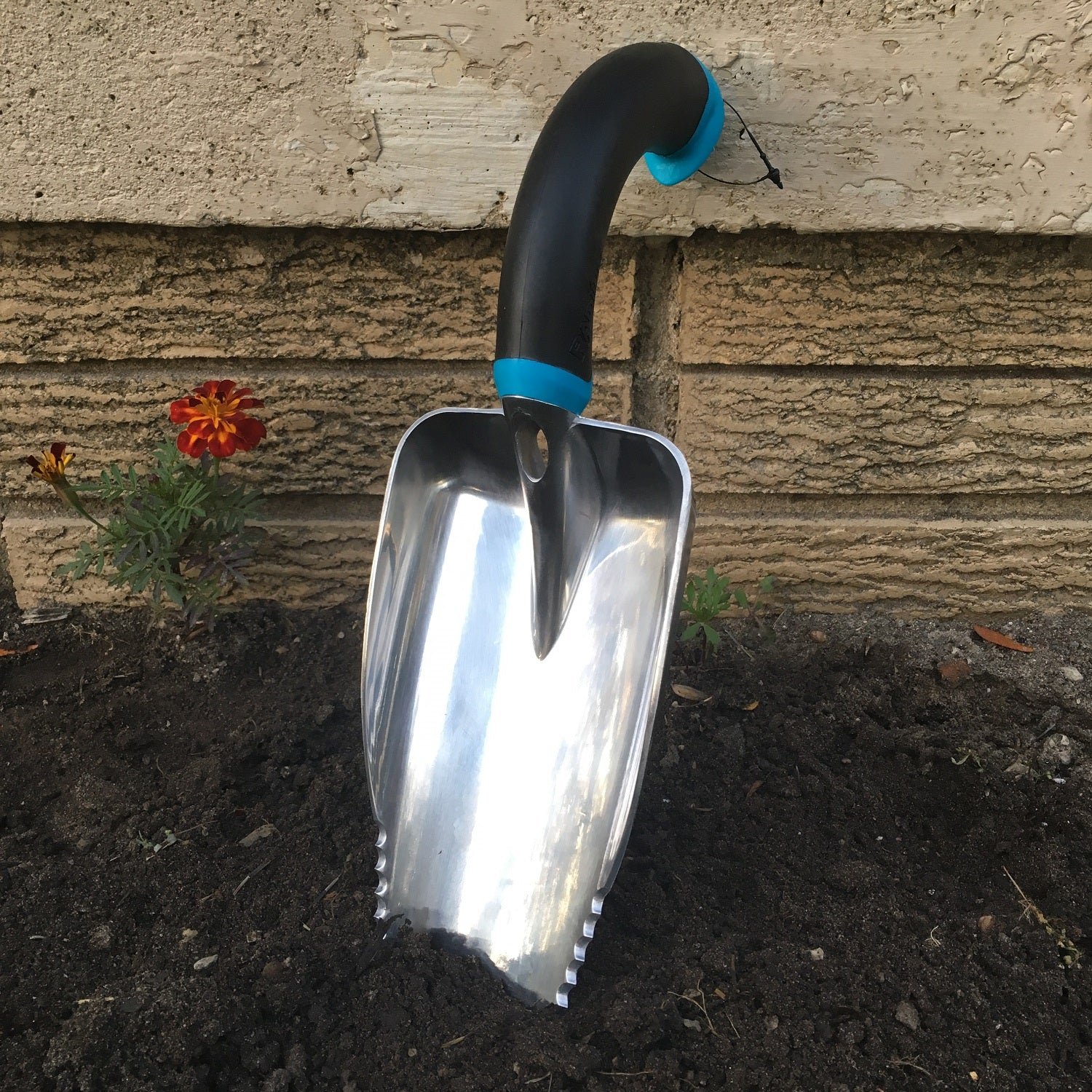 If you’ve ever spent much time working in good, nicely turned soil you’ve probably wished for a tool that was bigger than a trowel, but smaller than a shovel. That’s where the Ergonomic Scooper comes in handy. Use it like a giant trowel for working garden soil and in raised beds. Use it too for mixing soil in the potting shed. We always have one hanging on the edge of our charcoal grill. It’s the perfect tool for mixing hot coals. The serrated edges were designed to rip open soil bags, but serve many purposes in the garden.