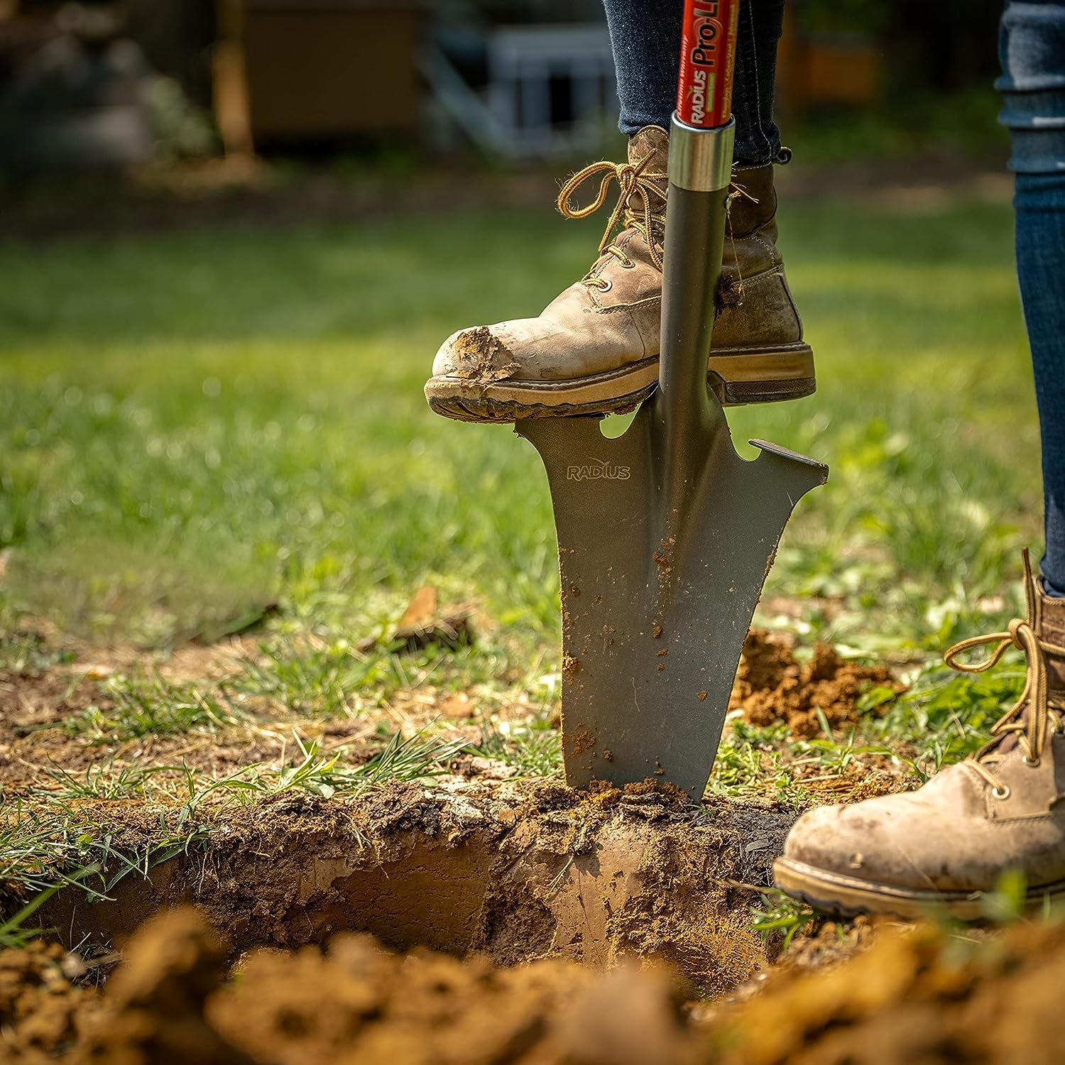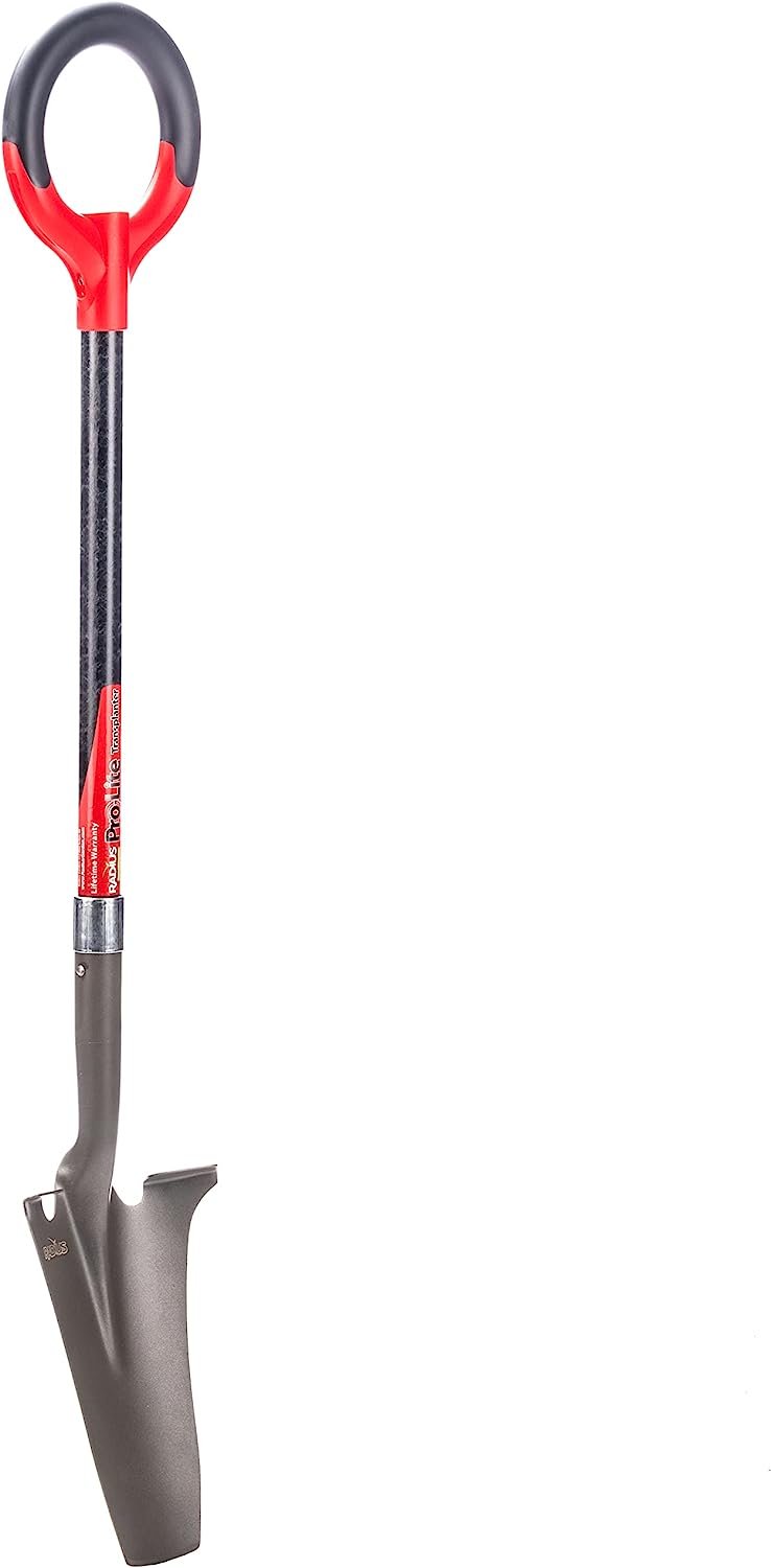 The patented Pro-Lite Transplanter blade is narrower & longer than a conventional shovel blade, with a cutting edge more like a nursery spade. This versatile tool is great for planting large liners, transplanting & separating perennials, & working around existing plantings in established gardens. You can easily & cleanly chop through the roots of perennials such as hostas. We use it every spring & fall to make the most out of our planting beds. Radius Pro-Lite tools are 4″ to 5″ longer than their PRO counterparts & feature the same large “O” handle & extra-wide raised forward kick for reduced strain, better balance, & ease-of-use. Blades are made of heat-tempered carbon steel.